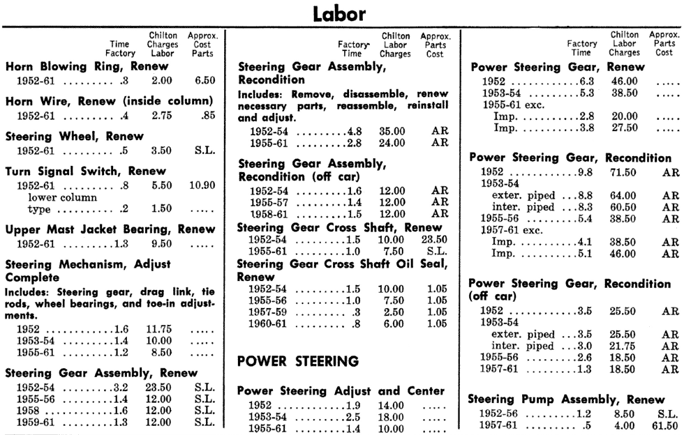 Labor Costs: Part 2 and Standard Steering Parts