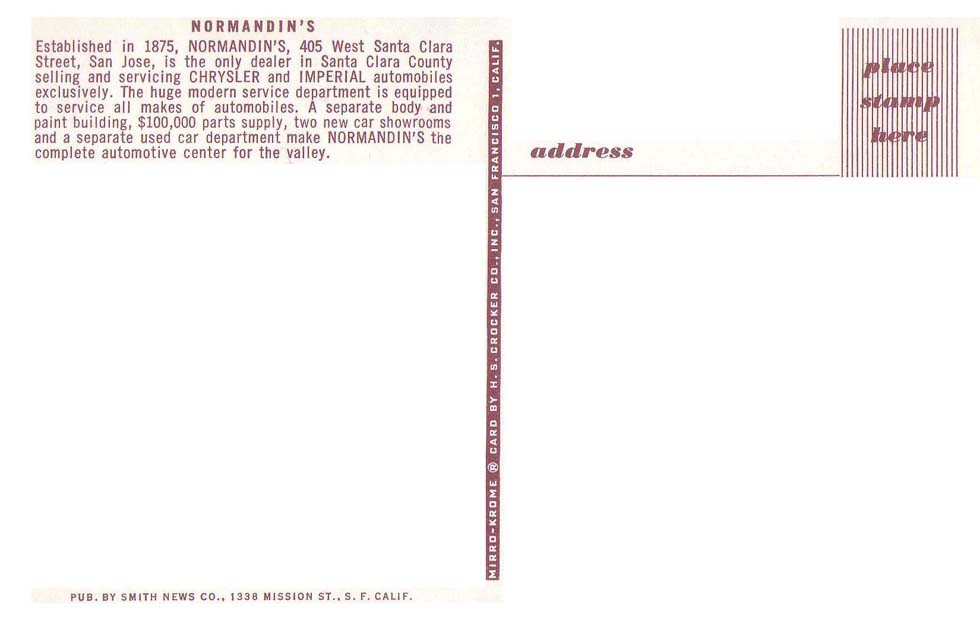 | (1959) Normandin's Chrysler - San Jose, CA Read more about Normandin's Chrysler here. | |