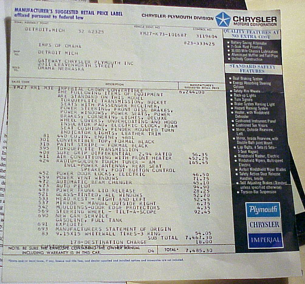 The previous owner Mr. David Ludtke of Lincoln Nebraska had an amazing amount of documentation on this car including the window sticker and bill of sale.
