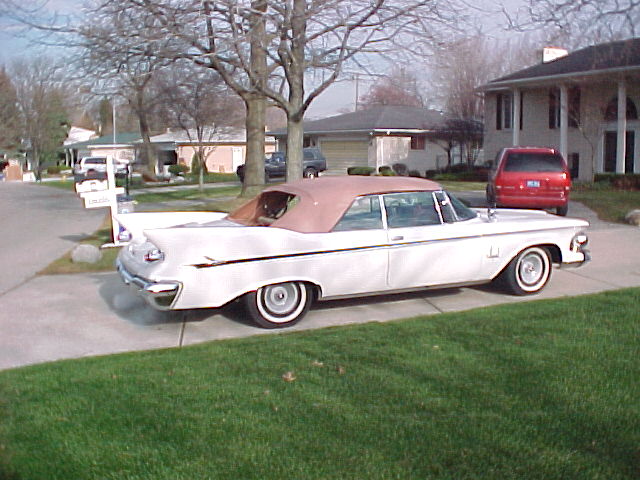 The 1961's were white with pinkish-tan ("Russet") interior and convertible top and top-mechanism - The ONLY known examples of non-black-or-white '61 convertible tops). The one that Tony used to own had the bench seat, factory air and Auto-Pilot, power vents and door locks, beam changer, radio, molding package, solex glass and Flitesweep decklid. Anything else that it may have come with was missing.