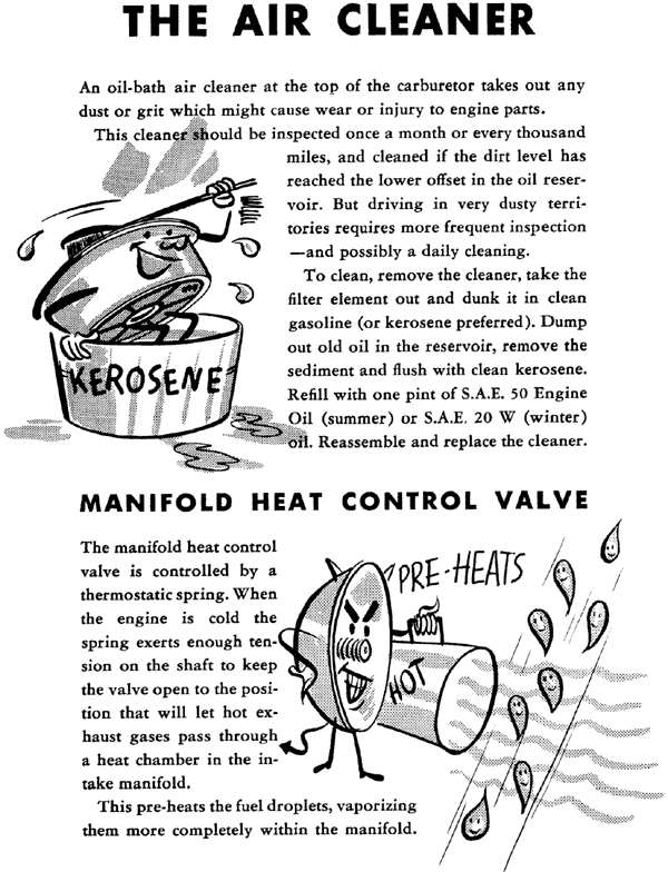 Front Cover Page 2 - Introduction To The Booklet Page 3 - Looking At The Whole Fuel System Page 4 - Fuel Tank and Filter Page 5 - Fuel Pump Page 6 - The Air Cleaner Page 7 - Gasoline + Air = Power Page 8 - Your Engine Is Really An Air Pump Page 9 - More About Carburetor Fundamentals Page 10 - What The Float System Does Page 11 - Other Causes Of High Fuel Levels Page 12 - The Main Metering System Page 13 - What The Throttle Valve Does Page 14 - Main Air Bleed Page 15 - Leaner Than Jet Standards Page 16 - Main Metering Jets Troubleshooting Page 17 - Ball & Ball Carburetors Set-Up Page 18 - Stromberg Carburetor Set-Up Page 19 - More On The Stromberg Carburetor Page 20 - Idle & Low Speed System Page 21 - More On The Low Speed System Page 22 - How To Adjust Engine Idle Page 23 - How To Diagnose Trouble In The Idle System Page 24 - Where The Accelerator System Takes Over Page 25 - Accelerator Pump Troubleshooting Page 26 - Adjusting The Pump Stroke Page 27 - The Choke System Page 28 - Keeping It Clean Page 29 - More On Cleaning The Carburetor Page 30 - Dash-Pot Page 31 - The Kick Down Switch Back Cover & Booklet Questionnaire