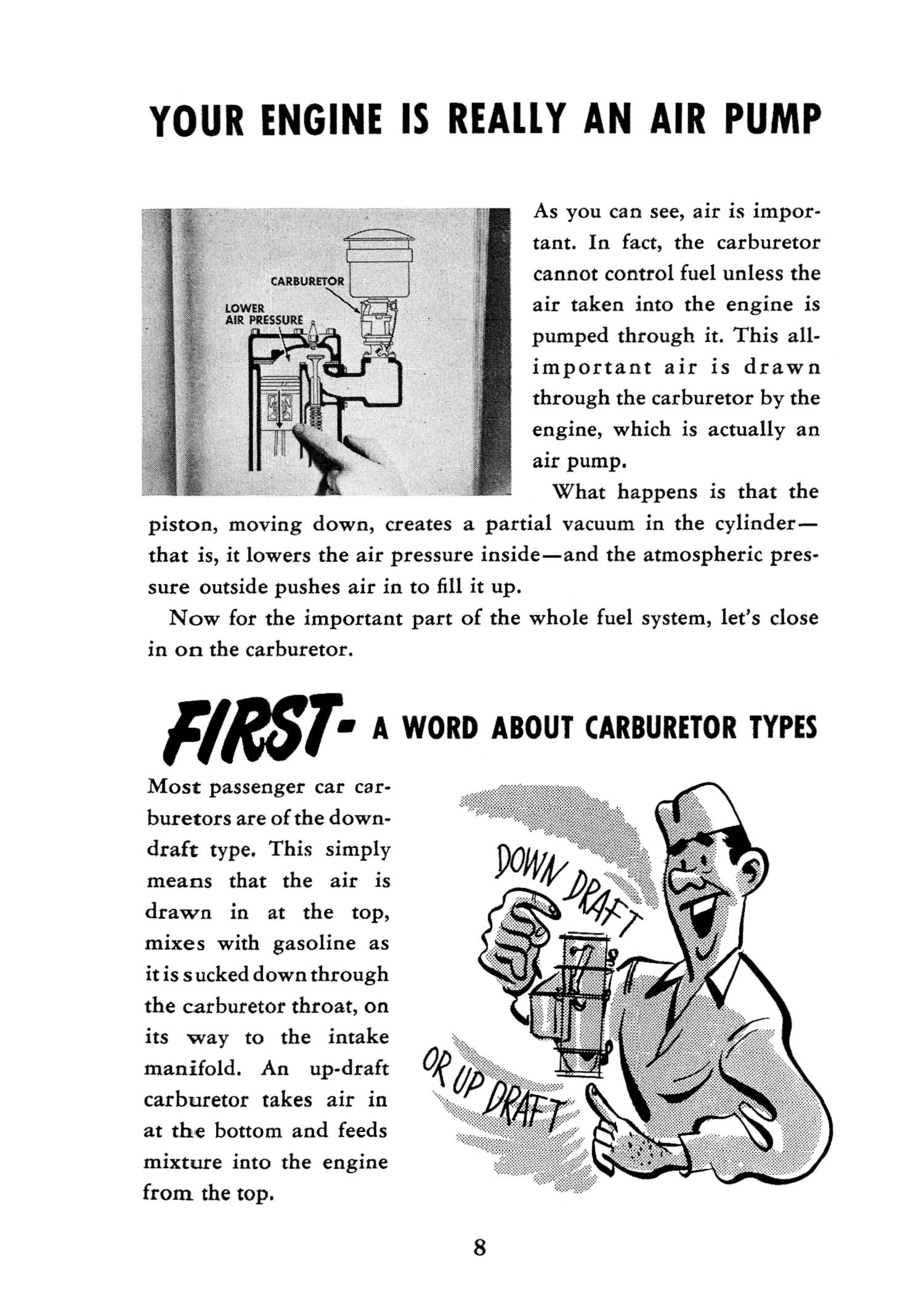 Move your way through the 1948 Chrysler Reference Guide On The Story Of The Carburetor by choosing your next page. You are currently on Page 8.
