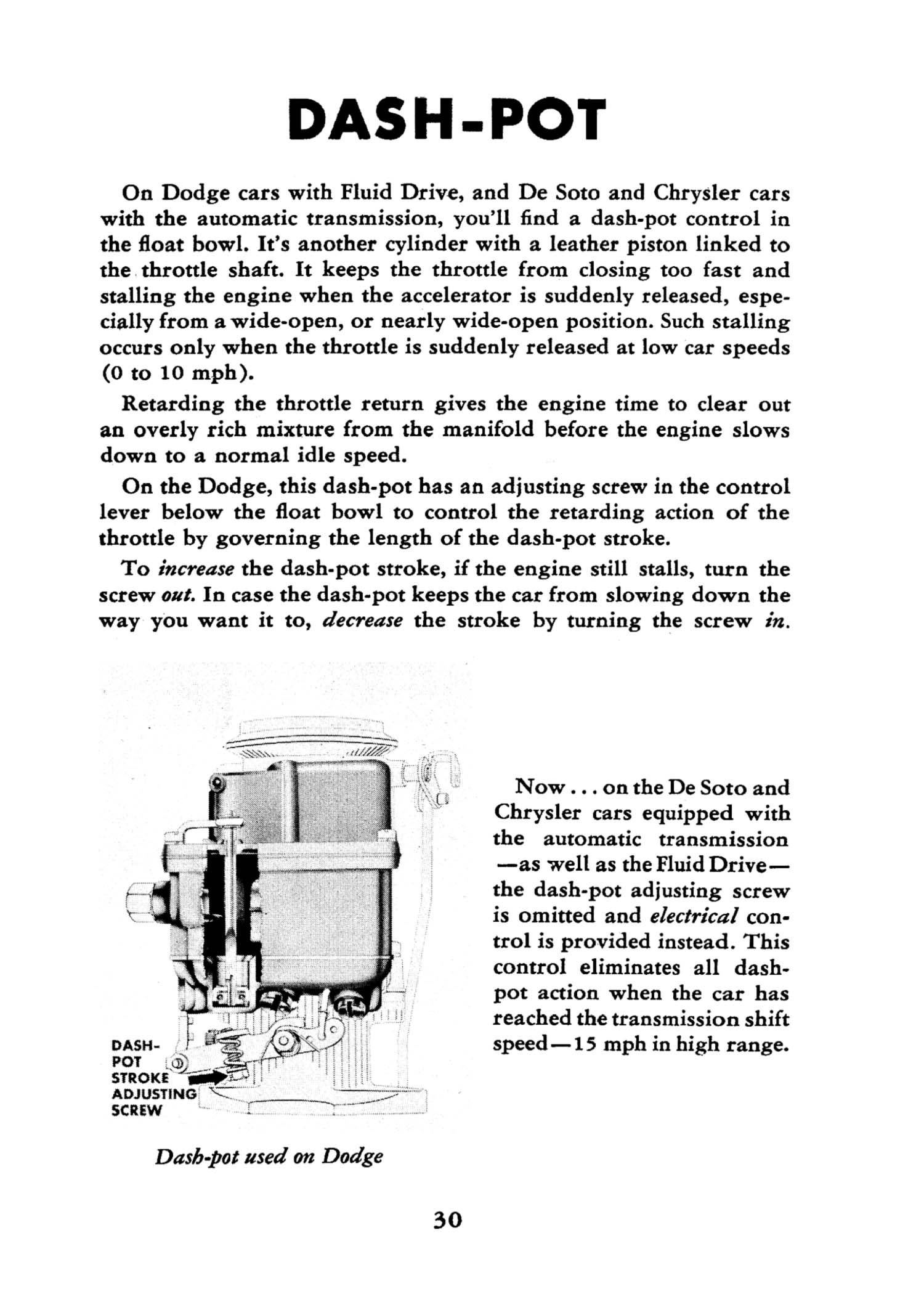 Move your way through the 1948 Chrysler Reference Guide On The Story Of The Carburetor by choosing your next page. You are currently on Page 30.