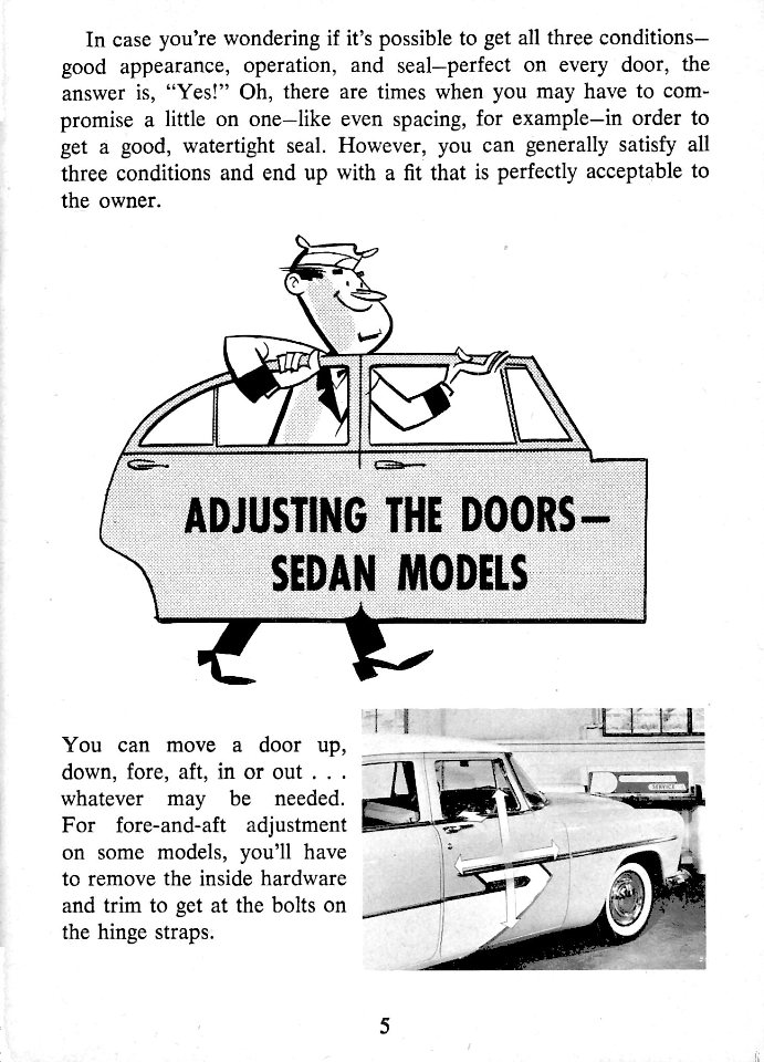 Move your way through the 1956 Door and Window Adjustments Reference Guide by choosing your next page. You are currently on Page 5.