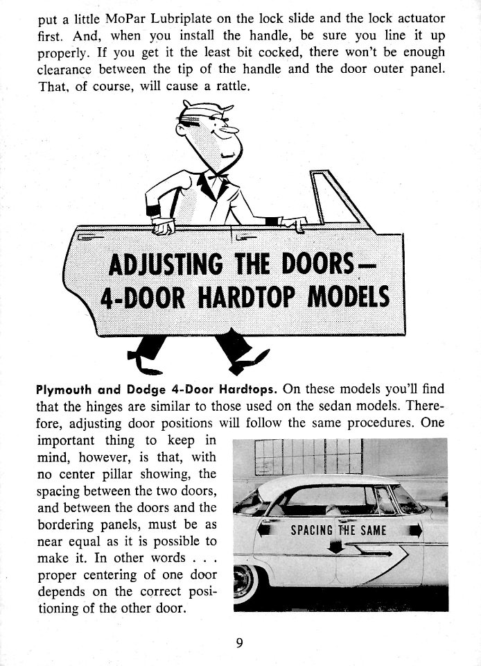 Move your way through the 1956 Door and Window Adjustments Reference Guide by choosing your next page. You are currently on Page 9.