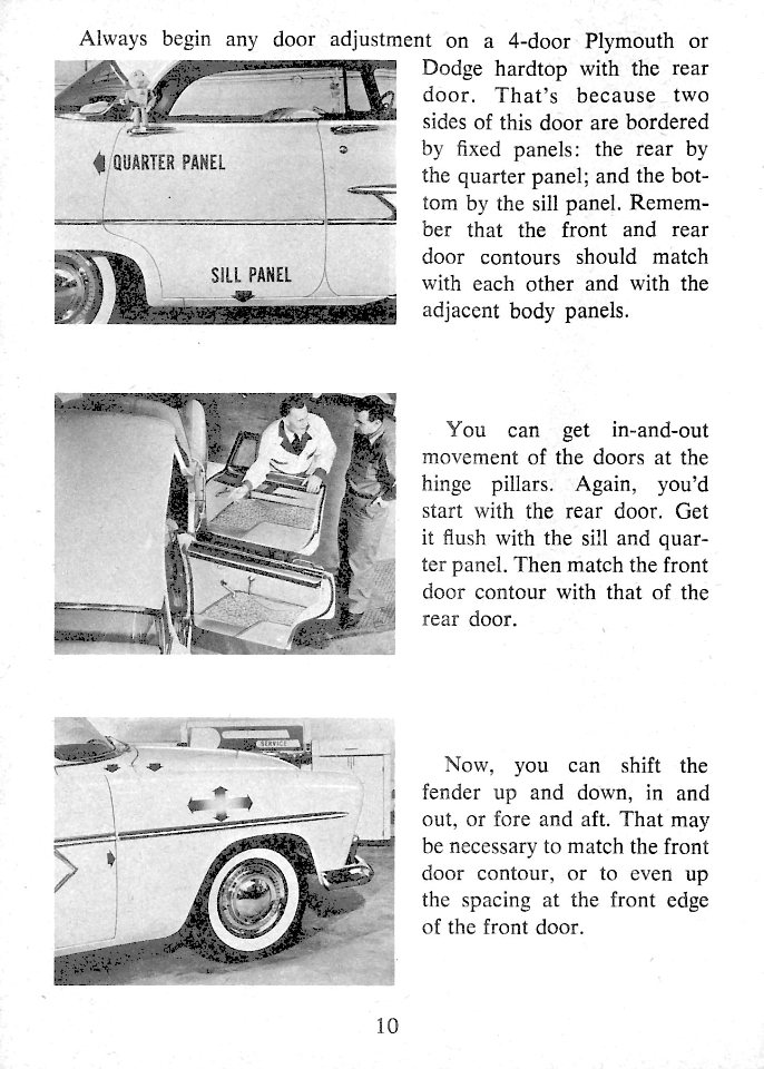 Move your way through the 1956 Door and Window Adjustments Reference Guide by choosing your next page. You are currently on Page 10.