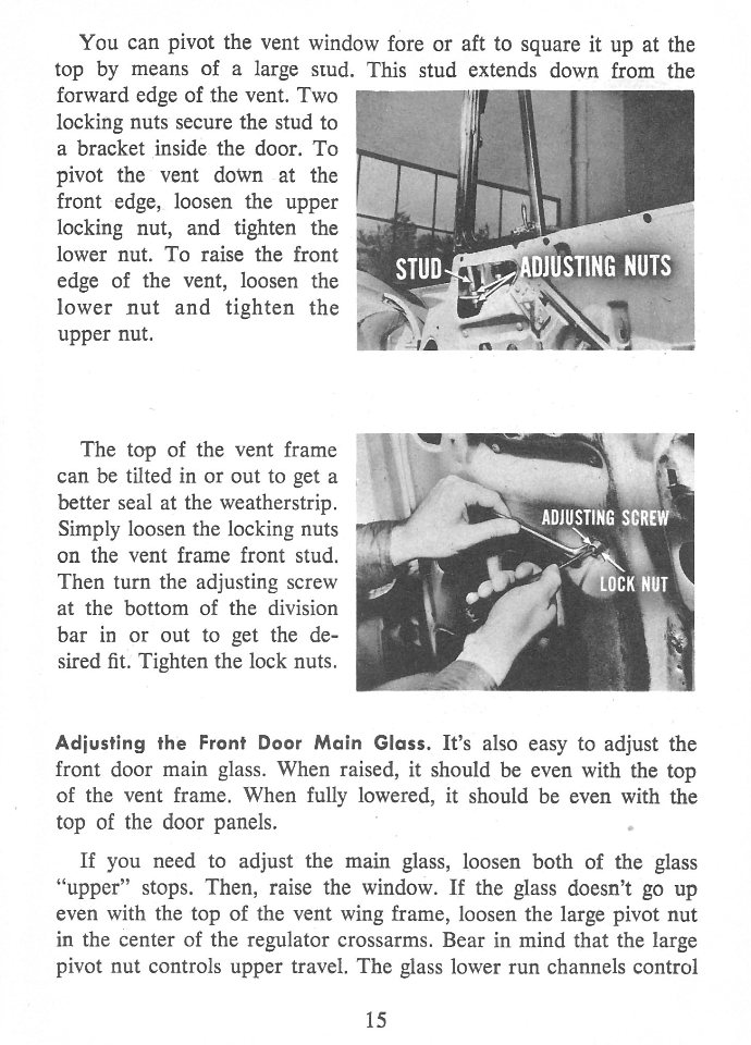 Move your way through the 1956 Door and Window Adjustments Reference Guide by choosing your next page. You are currently on Page 15.