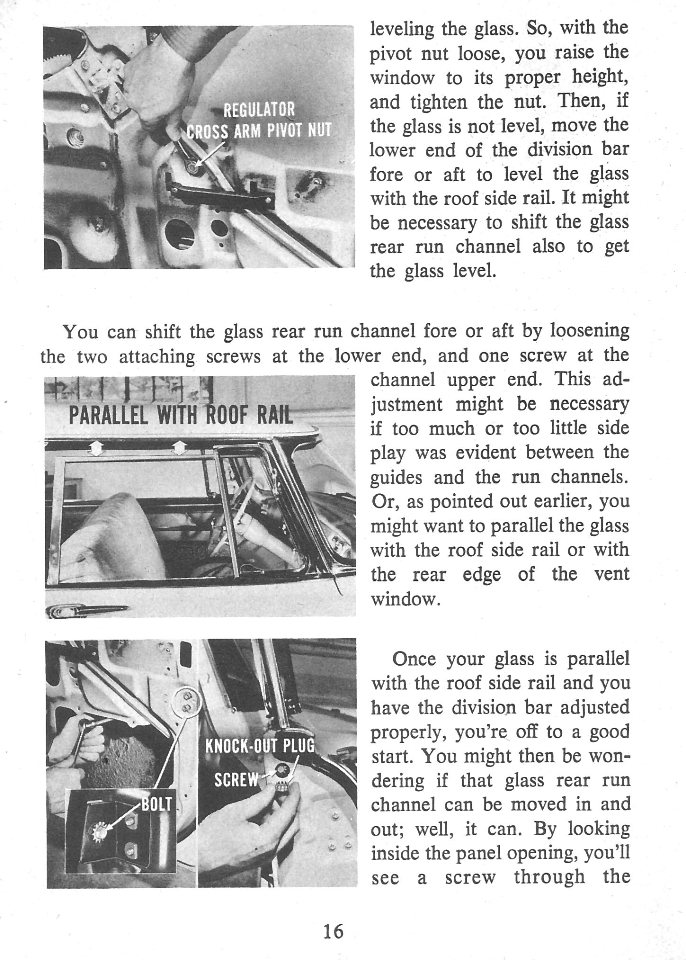 Move your way through the 1956 Door and Window Adjustments Reference Guide by choosing your next page. You are currently on Page 16.