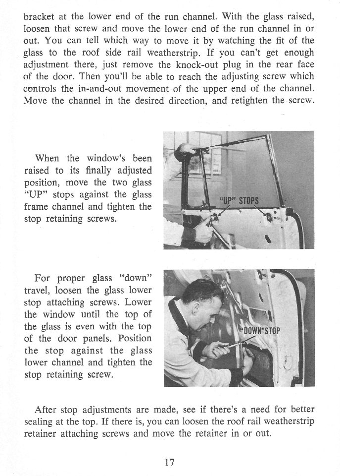Move your way through the 1956 Door and Window Adjustments Reference Guide by choosing your next page. You are currently on Page 17.