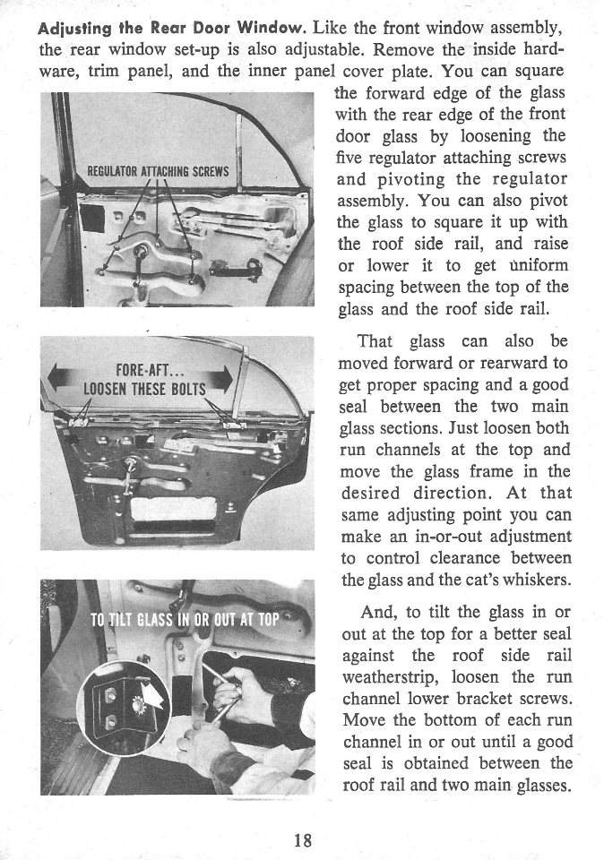 Move your way through the 1956 Door and Window Adjustments Reference Guide by choosing your next page. You are currently on Page 18.