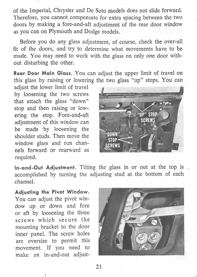 Move your way through the 1956 Door and Window Adjustments Reference Guide by choosing your next page. You are currently on Page 21.