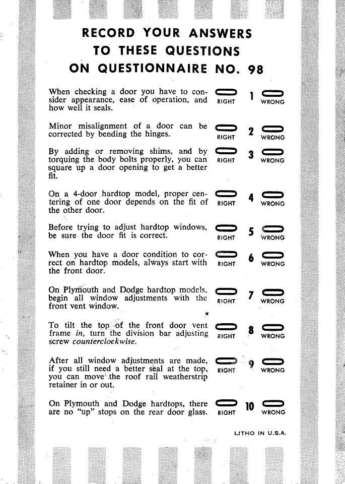 Move your way through the 1956 Door and Window Adjustments Reference Guide by choosing your next page. You are currently on the back cover.