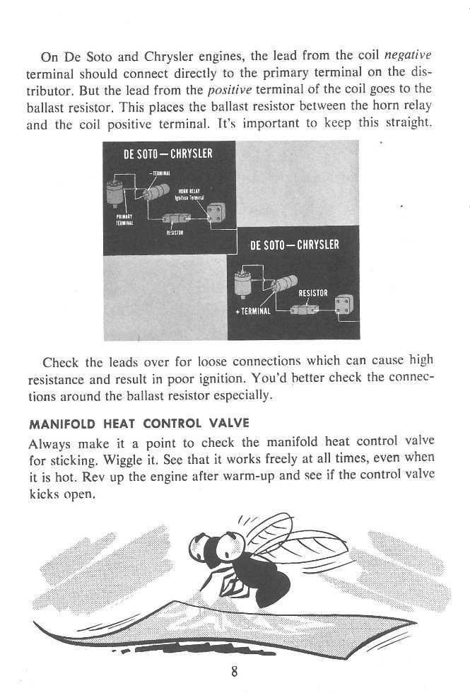 Front cover page 2 - Table of Contents page 3 - Factors Affecting Smooth Engine Idle Performance - General page 4 - Factors Affecting Smooth Engine Idle Performance - Ignition page 5 - Factors Affecting Smooth Engine Idle Performance - Ignition Continued page 6 - Factors Affecting Smooth Engine Idle Performance - Ignition Continued page 7 - Factors Affecting Smooth Engine Idle Performance - Ignition Continued page 8 - Factors Affecting Smooth Engine Idle Performance - Manifold Heat Control Valve page 9 - Factors Affecting Smooth Engine Idle Performance - Air Leaks page 10 - Factors Affecting Smooth Engine Idle Performance - Air Leaks Continued page 11 - Carburetor Maintenance page 12 - Carburetor Maintenance - Automatic Choke page 13 - Carburetor Maintenance - Idle Speed Adjustment page 14 - Carburetor Maintenance - Fast Idle Adjustment page 15 - Carburetor Maintenance - Throttle Valves page 16 - Loading Condition - 4-Barrel Carburetor page 17 - Loading Condition - 4-Barrel Carburetor Continued page 18 - Loading Condition - 4-Barrel Carburetor Continued page 19 - Surging Condition - 30 to 40 MPH Constant Speed page 20 - Hesitation on Acceleration page 21 - Hesitation on Acceleration Continued page 22 - The Accelerator Pump System - Two-Barrel Carburetor page 23 - The Accelerator Pump System - Two-Barrel Carburetor Continued page 24 - The Accelerator Pump System - Four-Barrel Carburetor page 25 - Cutting Out Or Stalling on Turns - Four-Barrel Carburetor page 26 - Cutting Out Or Stalling on Turns - Four-Barrel Carburetor Continued page 27 - Four-Barrel Carburetor Secondary Throttle Valves - Chrysler, DeSoto page 28 - Four-Barrel Carburetor Secondary Throttle Valves - Chrysler, DeSoto Continued page 29 - Secondary Throttle Valves - Plymouth and Dodge page 30 - Secondary Throttle Valves - Plymouth and Dodge page 31 - Summary back cover