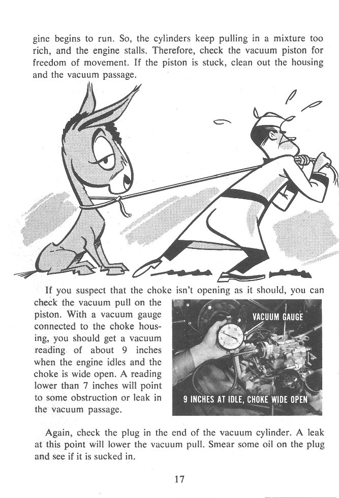 Front cover page 2 - Table of Contents page 3 - Factors Affecting Smooth Engine Idle Performance - General page 4 - Factors Affecting Smooth Engine Idle Performance - Ignition page 5 - Factors Affecting Smooth Engine Idle Performance - Ignition Continued page 6 - Factors Affecting Smooth Engine Idle Performance - Ignition Continued page 7 - Factors Affecting Smooth Engine Idle Performance - Ignition Continued page 8 - Factors Affecting Smooth Engine Idle Performance - Manifold Heat Control Valve page 9 - Factors Affecting Smooth Engine Idle Performance - Air Leaks page 10 - Factors Affecting Smooth Engine Idle Performance - Air Leaks Continued page 11 - Carburetor Maintenance page 12 - Carburetor Maintenance - Automatic Choke page 13 - Carburetor Maintenance - Idle Speed Adjustment page 14 - Carburetor Maintenance - Fast Idle Adjustment page 15 - Carburetor Maintenance - Throttle Valves page 16 - Loading Condition - 4-Barrel Carburetor page 17 - Loading Condition - 4-Barrel Carburetor Continued page 18 - Loading Condition - 4-Barrel Carburetor Continued page 19 - Surging Condition - 30 to 40 MPH Constant Speed page 20 - Hesitation on Acceleration page 21 - Hesitation on Acceleration Continued page 22 - The Accelerator Pump System - Two-Barrel Carburetor page 23 - The Accelerator Pump System - Two-Barrel Carburetor Continued page 24 - The Accelerator Pump System - Four-Barrel Carburetor page 25 - Cutting Out Or Stalling on Turns - Four-Barrel Carburetor page 26 - Cutting Out Or Stalling on Turns - Four-Barrel Carburetor Continued page 27 - Four-Barrel Carburetor Secondary Throttle Valves - Chrysler, DeSoto page 28 - Four-Barrel Carburetor Secondary Throttle Valves - Chrysler, DeSoto Continued page 29 - Secondary Throttle Valves - Plymouth and Dodge page 30 - Secondary Throttle Valves - Plymouth and Dodge page 31 - Summary back cover
