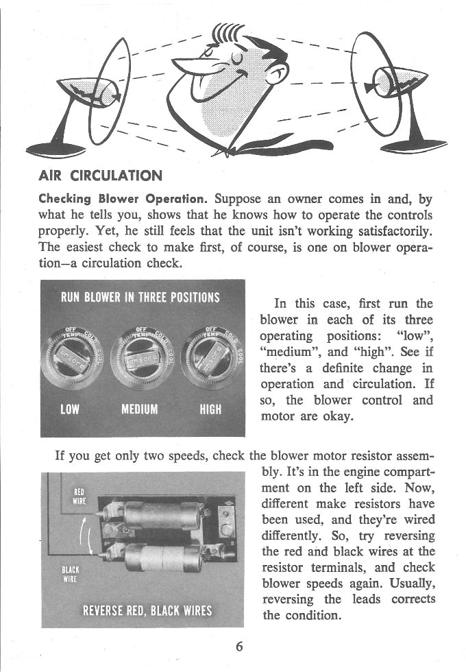 Front Cover Page 2 - Introduction Page 3 - Table of Contents Page 4 - Three Phases of Air-Conditioning Service - Operations of Controls Page 5 - Operation of Controls Continued Page 6 - Air Circulation Page 7 - Air Circulation Continued Page 8 - Refrigeration System Page 9 - Refrigeration System Continued Page 10 - Road Test the Car Page 11 - Test for Leaks Page 12 - Check the Compressor Page 13 - Check for Restrictions Page 14 - Check the Solenoid Valve Page 15 - Check the Solenoid Continued Page 16 - Check the Expansion Valve Page 17 - Refrigeration System Service Page 18 - How to Discharge the System Page 19 - Discharge Diagram Page 20 - Evacuate the System Page 21 - The Sweep-Test Charge Page 22 - Charging the System Page 23 - Compressor Capacity Test Page 24 - Thermal Switch and Solenoid Test Page 25 - Super Heat Test Page 26 - Super Heat Test Continued Page 27 - Super Heat Determination Chart Back Cover