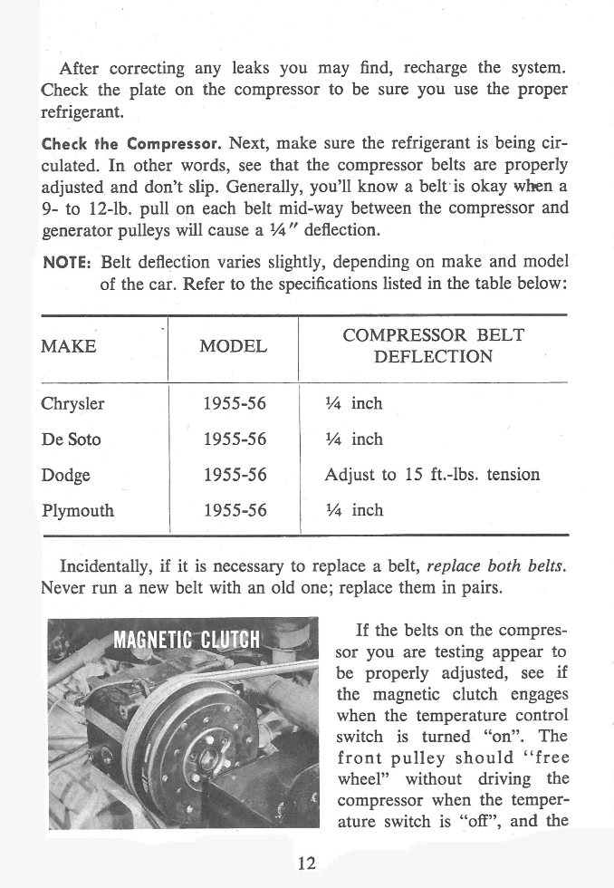 Front Cover Page 2 - Introduction Page 3 - Table of Contents Page 4 - Three Phases of Air-Conditioning Service - Operations of Controls Page 5 - Operation of Controls Continued Page 6 - Air Circulation Page 7 - Air Circulation Continued Page 8 - Refrigeration System Page 9 - Refrigeration System Continued Page 10 - Road Test the Car Page 11 - Test for Leaks Page 12 - Check the Compressor Page 13 - Check for Restrictions Page 14 - Check the Solenoid Valve Page 15 - Check the Solenoid Continued Page 16 - Check the Expansion Valve Page 17 - Refrigeration System Service Page 18 - How to Discharge the System Page 19 - Discharge Diagram Page 20 - Evacuate the System Page 21 - The Sweep-Test Charge Page 22 - Charging the System Page 23 - Compressor Capacity Test Page 24 - Thermal Switch and Solenoid Test Page 25 - Super Heat Test Page 26 - Super Heat Test Continued Page 27 - Super Heat Determination Chart Back Cover