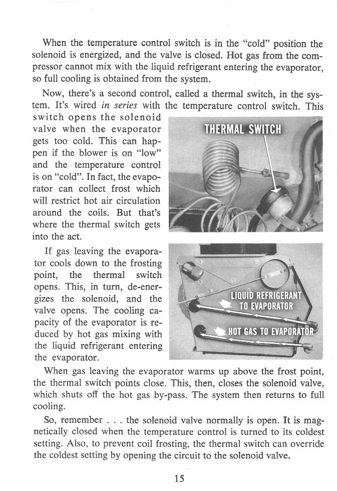 Front Cover Page 2 - Introduction Page 3 - Table of Contents Page 4 - Three Phases of Air-Conditioning Service - Operations of Controls Page 5 - Operation of Controls Continued Page 6 - Air Circulation Page 7 - Air Circulation Continued Page 8 - Refrigeration System Page 9 - Refrigeration System Continued Page 10 - Road Test the Car Page 11 - Test for Leaks Page 12 - Check the Compressor Page 13 - Check for Restrictions Page 14 - Check the Solenoid Valve Page 15 - Check the Solenoid Continued Page 16 - Check the Expansion Valve Page 17 - Refrigeration System Service Page 18 - How to Discharge the System Page 19 - Discharge Diagram Page 20 - Evacuate the System Page 21 - The Sweep-Test Charge Page 22 - Charging the System Page 23 - Compressor Capacity Test Page 24 - Thermal Switch and Solenoid Test Page 25 - Super Heat Test Page 26 - Super Heat Test Continued Page 27 - Super Heat Determination Chart Back Cover