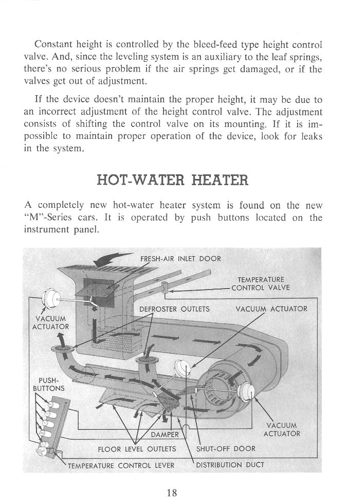 Front Cover Page 2 - Table of Contents Page 3 - Plymouth Engines Page 4 - Plymouth Engines Continued Page 5 - Plymouth Engines Continued Page 6 - Plymouth Engines Continued Page 7 - Dodge Engines Page 8 - Dodge Engines Continued Page 9 - Desoto Engines Page 10 - Chrysler Engines Page 11 - Chrysler Engines Continued Page 12 - General Engine Information Page 13 - Automatic Transmissions and Front Suspension Page 14 - Front Suspension Continued Page 15 - Front Suspension Continued Page 16 - Car-Leveling Device Page 17 - Car-Leveling Device Continued Page 18 - Hot Water Heater Page 19 - Air Conditioning Page 20 - Air Conditioning Continued Page 21 - Body Features Page 22 - Accessories Page 23 - Summary Back Cover