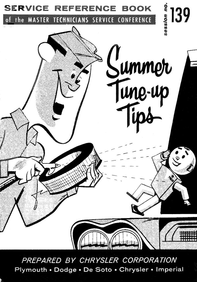 Front Cover Page 2 - Introduction Page 3 - Table of Contents Page 4 - High-Tension Cables Page 5 - Loose, Corroded Terminals Page 6 - Distributor Points Page 7 - Air Cleaner Page 8 - Air Cleaner - Continued Page 9 - Crankcase Ventilation and Drive Belts Page 10 - Drive Belt Tensions Page 11 - Cooling System Page 12 - Manifold Heat Control Valve Page 13 - Manifold Heat Control Valve Continued Page 14 - Carburetor Page 15 - Secondary Throttle Valve Operation and Fuel Economy and Hard Starting Page 16 - Poor Top Speed Performance Page 17 - Accelerator Pump Position and Transmission Throttle Linkage Adjustment Page 18 - Transmission Throttle Linkage Adjustment Continued Page 19 - A Closing Word Back Cover