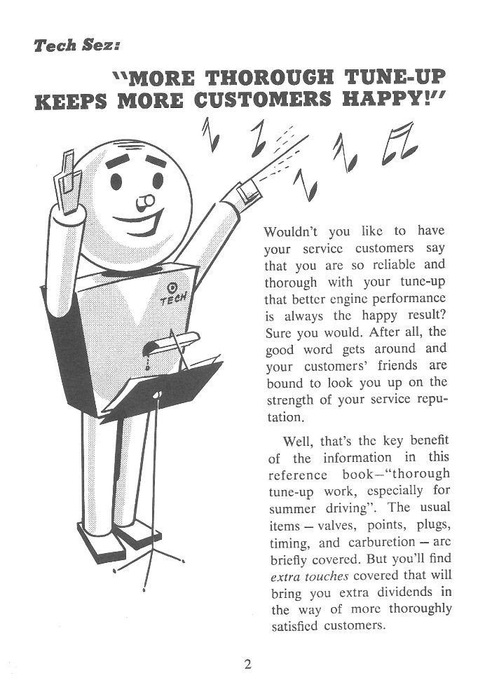 Front Cover Page 2 - Introduction Page 3 - Table of Contents Page 4 - High-Tension Cables Page 5 - Loose, Corroded Terminals Page 6 - Distributor Points Page 7 - Air Cleaner Page 8 - Air Cleaner - Continued Page 9 - Crankcase Ventilation and Drive Belts Page 10 - Drive Belt Tensions Page 11 - Cooling System Page 12 - Manifold Heat Control Valve Page 13 - Manifold Heat Control Valve Continued Page 14 - Carburetor Page 15 - Secondary Throttle Valve Operation and Fuel Economy and Hard Starting Page 16 - Poor Top Speed Performance Page 17 - Accelerator Pump Position and Transmission Throttle Linkage Adjustment Page 18 - Transmission Throttle Linkage Adjustment Continued Page 19 - A Closing Word Back Cover