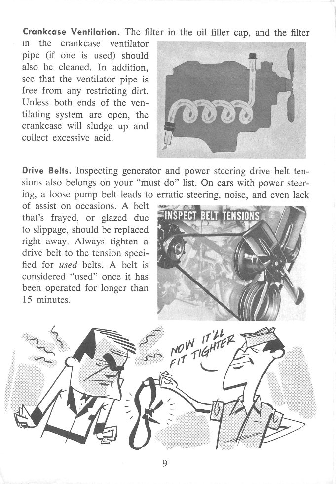 Front Cover Page 2 - Introduction Page 3 - Table of Contents Page 4 - High-Tension Cables Page 5 - Loose, Corroded Terminals Page 6 - Distributor Points Page 7 - Air Cleaner Page 8 - Air Cleaner - Continued Page 9 - Crankcase Ventilation and Drive Belts Page 10 - Drive Belt Tensions Page 11 - Cooling System Page 12 - Manifold Heat Control Valve Page 13 - Manifold Heat Control Valve Continued Page 14 - Carburetor Page 15 - Secondary Throttle Valve Operation and Fuel Economy and Hard Starting Page 16 - Poor Top Speed Performance Page 17 - Accelerator Pump Position and Transmission Throttle Linkage Adjustment Page 18 - Transmission Throttle Linkage Adjustment Continued Page 19 - A Closing Word Back Cover