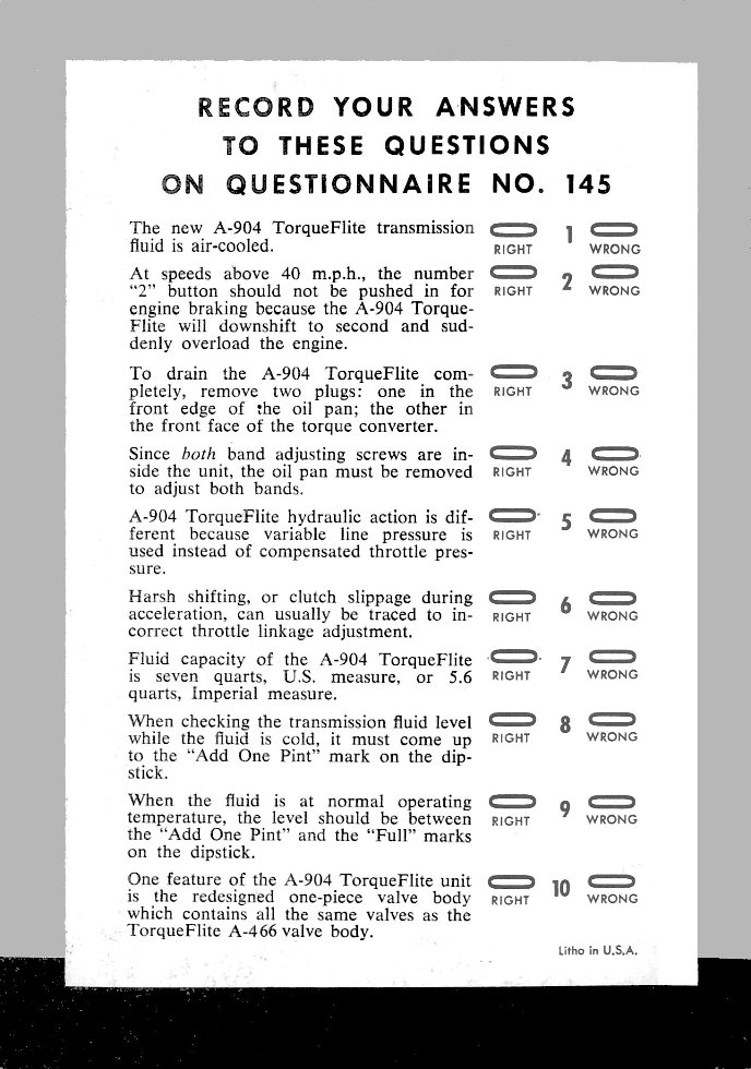 Close this window to return to A-904 Torqueflite Automatic Transmission Service Table of Contents.