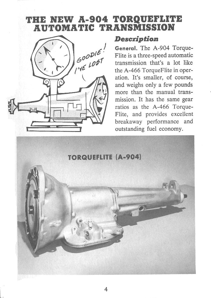 Move your way through the A-904 Torqueflite Automatic Transmission Service Reference Guide by choosing your next page. You are currently on the Page 4.