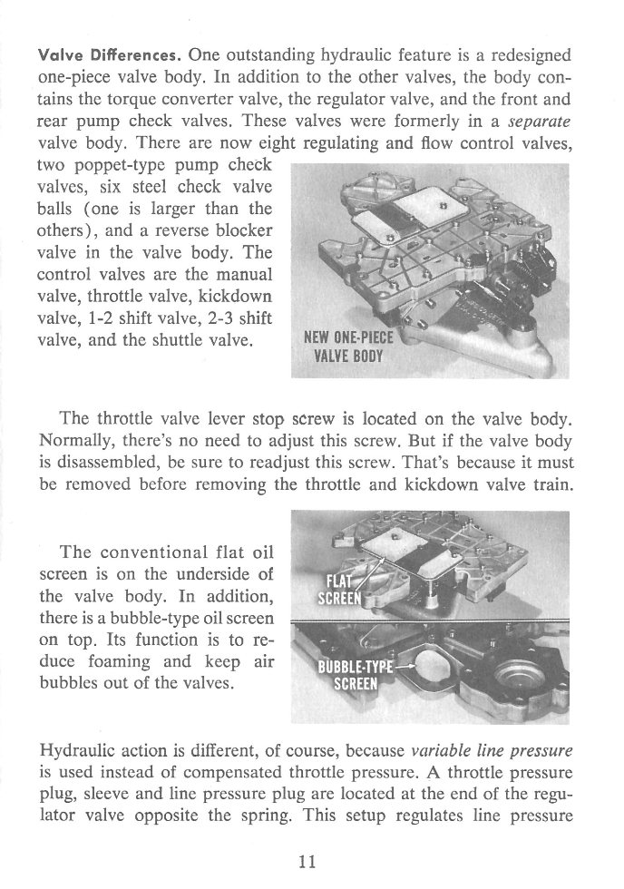 Front Cover Page 2 - Table of Content Page 3 - Table of Contents Continued Page 4 - General Description Page 5 - General Description Continued Page 6 - Throttle Linkage Differences Page 7 - Water-Cooling Arrangement Page 8 - Filler Tube and Speedometer Pinion Attachment Page 9 - Drain Plugs and Internal Unit Arrangement Page 10 - Internal Unit Arrangement Continued Page 11 - Valve Differences Page 12 - Operation Page 13 - Power Flow Page 14 - Power Flow - Breakaway Page 15 - Power Flow - Second Page 16 - Power Flow - Direct Page 17 - Power Flow - Manual Low Page 18 - Power Flow - Reverse Page 19 - Service Tips Page 20 - Service Tips Continued Page 21 - Service Tips Continued Page 22 - Service Tips Continued Page 23 - Service Tips Continued Page 24 - Throttle Linkage Page 25 - Parking Lock Page 26 - Shift Pattern Page 27 - Summary Back Cover