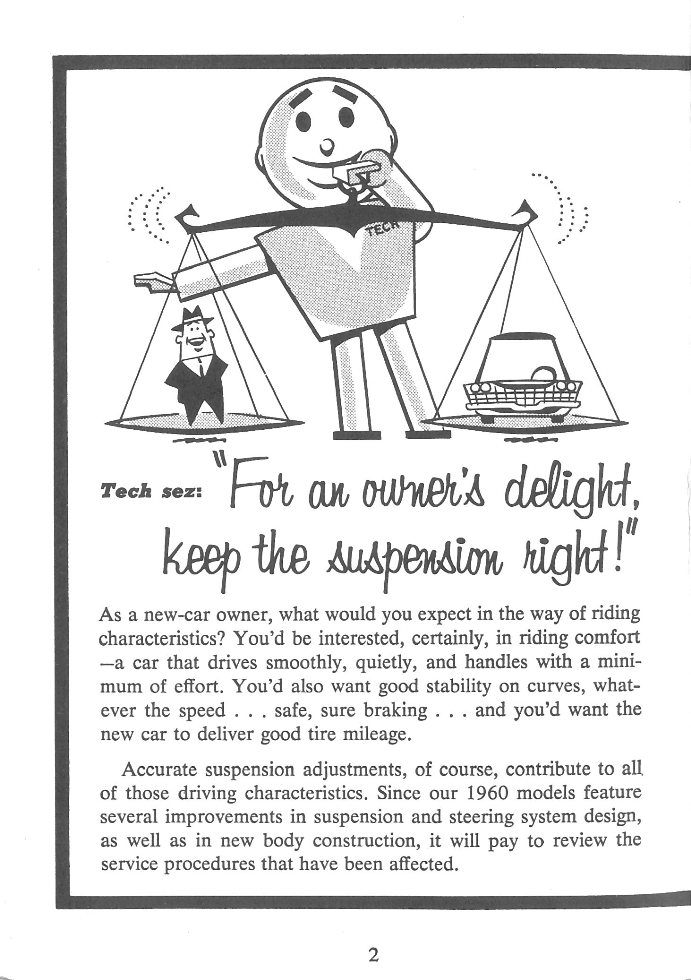 Move your way through the 1960 Suspension and Front-End Alignment Service Reference Guide by choosing your next page. You are currently on the Page 2.