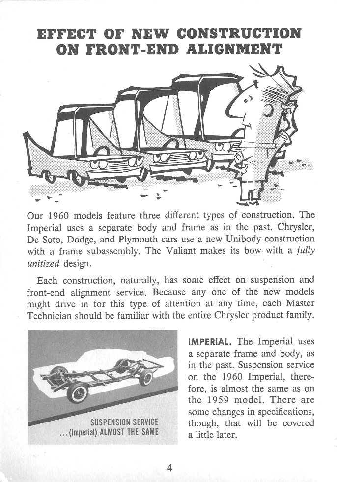 Move your way through the 1960 Suspension and Front-End Alignment Service Reference Guide by choosing your next page. You are currently on the Page 4.