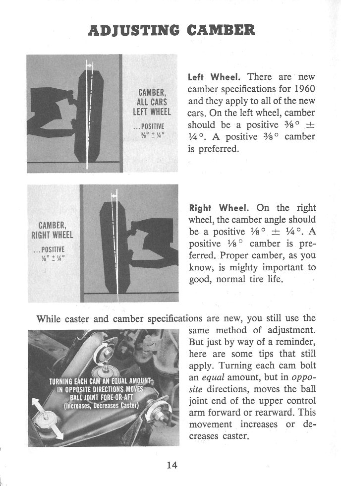Move your way through the 1960 Suspension and Front-End Alignment Service Reference Guide by choosing your next page. You are currently on the Page 14.