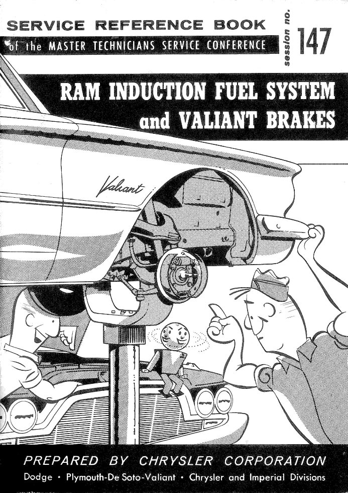 Front Cover Page 2 - Intro Page 3 - Table of Contents Page 4 - RAM Induction Fuel System Page 5 - RAM Induction Fuel System Continued Page 6 - RAM Induction Fuel System Continued Page 7 - Engine Tune-Up Page 8 - Engine Tune-Up Continued Page 9 - Engine Tune-Up Continued Page 10 - Engine Tune-Up Continued Page 11 - Engine Tune-Up Continued Page 12 - Engine Tune-Up Continued Page 13 - Engine Tune-Up Continued Page 14 - Other Service Tips Page 15 - Other Service Tips Continued Page 16 - Valiant Brakes Page 17 - Valiant Brakes Continued Page 18 - Valiant Brakes Continued Page 19 - Valiant Brakes Continued Page 20 - Valiant Brakes Continued Page 21 - Valiant Brakes Continued Page 22 - Valiant Brakes Continued Page 23 - Valiant Brakes Continued Page 24 - Valiant Power Brakes Page 25 - Valiant Power Brakes Continued Page 26 - Summary Page 27 - Correction Notice Back Cover