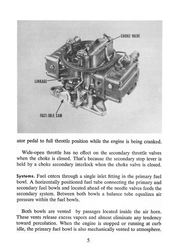 Front Cover Page 2 - Tech Sez Page 3 - General Page 4 - Choke Page 5 - Fuel Systems Page 6 - Power Valve & Accelerating Pump Page 7 - Idle Bypass Page 8 - Flow Systems Page 9 - Primary & Secondary Bowls Page 10 - Float and Valve & Seat Assembly Page 11 - Primary Idle System Page 12 - Fuel Mixture Adjustment Page 13 - Idle Bypass System Page 14 - Secondary Idle System Page 15 - Primary Main Metering System Page 16 - Secondary Main Metering System Page 17 - Power Enrichment System Page 18 - The Power Valve Page 19 - Accelerating Pump System Page 20 - Carburetor Adjustments Page 21 - Idle Mixture & Air-Speed Adjustment Page 22 - Adjusting The Carburetor Off the Car Page 23 - Choke Adjustment Page 24 - Troubleshooting Tips Page 25 - Troubleshooting Tips (cont'd) Page 26 - Troubleshooting Tips (cont'd) Page 27 - A Final Word Back Cover