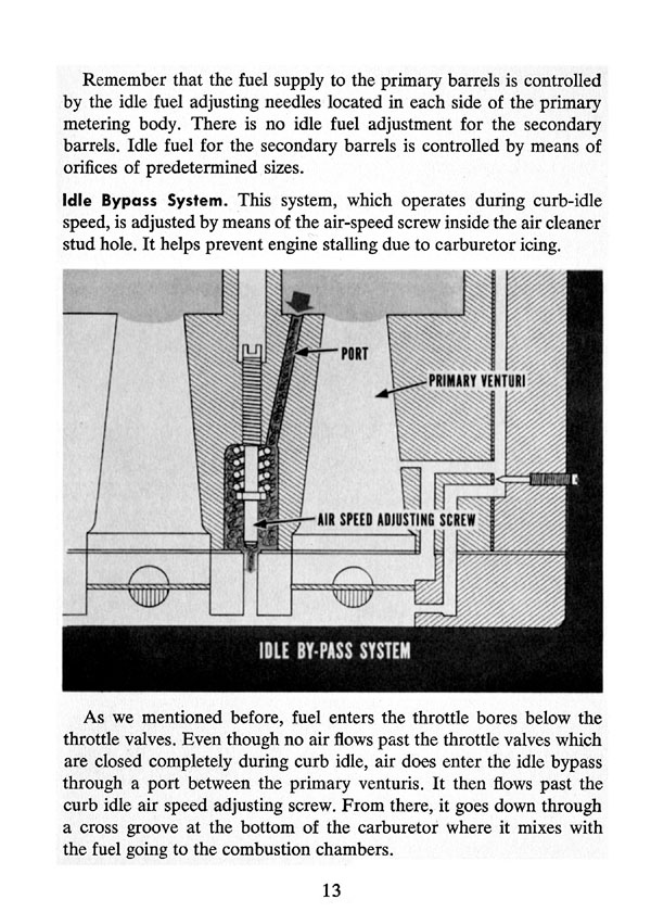 Front Cover Page 2 - Tech Sez Page 3 - General Page 4 - Choke Page 5 - Fuel Systems Page 6 - Power Valve & Accelerating Pump Page 7 - Idle Bypass Page 8 - Flow Systems Page 9 - Primary & Secondary Bowls Page 10 - Float and Valve & Seat Assembly Page 11 - Primary Idle System Page 12 - Fuel Mixture Adjustment Page 13 - Idle Bypass System Page 14 - Secondary Idle System Page 15 - Primary Main Metering System Page 16 - Secondary Main Metering System Page 17 - Power Enrichment System Page 18 - The Power Valve Page 19 - Accelerating Pump System Page 20 - Carburetor Adjustments Page 21 - Idle Mixture & Air-Speed Adjustment Page 22 - Adjusting The Carburetor Off the Car Page 23 - Choke Adjustment Page 24 - Troubleshooting Tips Page 25 - Troubleshooting Tips (cont'd) Page 26 - Troubleshooting Tips (cont'd) Page 27 - A Final Word Back Cover