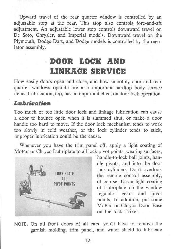 Move your way through the Doors, Windows and Locks Body Service Reference Guide by choosing your next page. You are currently on the Page 12.