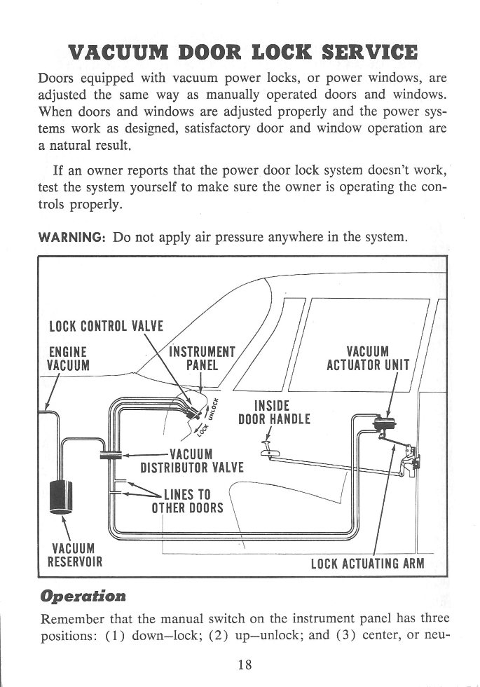 Front Cover Page 2 - Table of Contents Page 3 - Door Alignment Page 4 - Door Alignment - Four Door Hardtop Page 5 - Door Alignment - Convertible Page 6 - Window Alignment - Four Door Hardtop Page 7 - Window Alignment - Four Door - Continued Page 8 - Window Alignment - Four Door - Continued Page 9 - Window Alignment - Four Door - Continued Page 10 - Window Alignment - Four Door - Continued Page 11 - Window Alignment - Two Door Page 12 - Door Lock and Linkage Service - Lubrication Page 13 - Door Lock and Linkage Service - Diagnosis Page 14 - Door Lock and Linkage Service - Diagnosis - Continued Page 15 - Door Lock and Linkage Service - Diagnosis - Continued Page 16 - Door Lock and Linkage Service - Diagnosis - Continued Page 17 - Door Lock and Linkage Service - Diagnosis - Continued Page 18 - Vacuum Door Lock Service - Operation Page 19 - Vacuum Door Lock Service - Diagnosis Page 20 - Vacuum Door Lock Service - Diagnosis - Continued Page 21 - Vacuum Door Lock Service - Diagnosis - Continued Page 22 - Vacuum Door Lock Service - Diagnosis - Continued Page 23 - A Closing Word Back Cover