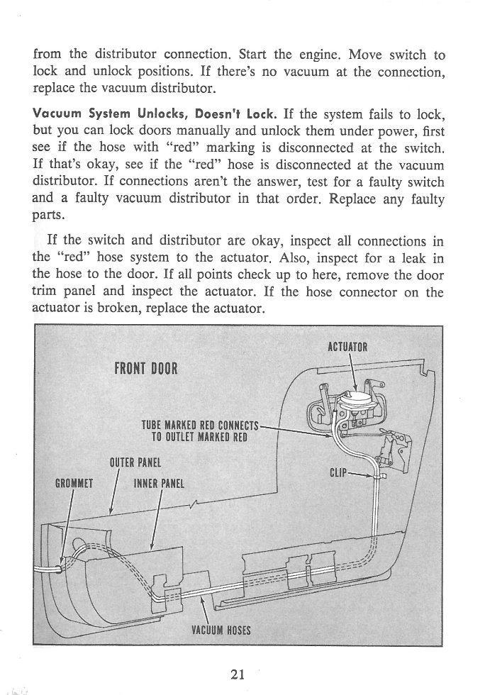 Front Cover Page 2 - Table of Contents Page 3 - Door Alignment Page 4 - Door Alignment - Four Door Hardtop Page 5 - Door Alignment - Convertible Page 6 - Window Alignment - Four Door Hardtop Page 7 - Window Alignment - Four Door - Continued Page 8 - Window Alignment - Four Door - Continued Page 9 - Window Alignment - Four Door - Continued Page 10 - Window Alignment - Four Door - Continued Page 11 - Window Alignment - Two Door Page 12 - Door Lock and Linkage Service - Lubrication Page 13 - Door Lock and Linkage Service - Diagnosis Page 14 - Door Lock and Linkage Service - Diagnosis - Continued Page 15 - Door Lock and Linkage Service - Diagnosis - Continued Page 16 - Door Lock and Linkage Service - Diagnosis - Continued Page 17 - Door Lock and Linkage Service - Diagnosis - Continued Page 18 - Vacuum Door Lock Service - Operation Page 19 - Vacuum Door Lock Service - Diagnosis Page 20 - Vacuum Door Lock Service - Diagnosis - Continued Page 21 - Vacuum Door Lock Service - Diagnosis - Continued Page 22 - Vacuum Door Lock Service - Diagnosis - Continued Page 23 - A Closing Word Back Cover