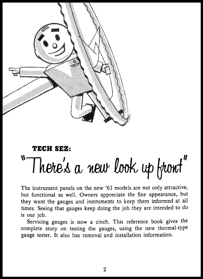 Front cover page 2 - There's a new look up front page 3 - Table of contents page 4 - General Information on Instrument Panel Service page 5 - Gauge Testing Procedures page 6 - Testing the Temperature Gauge Sending Unit page 7 - Testing the Oil Pressure Sending Unit page 8 - Testing the Oil Pressure Sending Unit continued page 9 - Testing the Fuel Gauge Sending Unit page 10 - Testing the Fuel Gauge Sending Unit continued page 11 - Gauge Voltage Regulators page 12 - External-Type Voltage Regulator page 13 - Internal-Type Voltage Regulator page 14 - Testing Panel Gauges - Plymouth page 15 - Testing Panel Gauges continued- Plymouth page 16 - Testing Panel Gauges continued - Chrysler page 17 - Testing Panel Gauges continued - All Other Models page 18 - Testing Panel Gauges continued - All Other Models page 19 - Cluster Removal - Valiant page 20 - Cluster Removal continued - Valiant page 21 - Cluster Removal - Lancer page 22 - Cluster Removal - Plymouth page 23 - Cluster Removal - Dart, Polara and DeSoto page 24 - Cluster Removal continued - Dart, Polara and DeSoto page 25 - Cluster Removal continued - Dart, Polara and DeSoto page 26 - Cluster Removal continued - Dart, Polara and DeSoto page 27 - Cluster Removal continued - Dart, Polara and DeSoto page 28 - Cluster Removal - Chrysler page 29 - Cluster Removal continued - Chrysler page 30 - Cluster Removal continued - Chrysler page 31 - Conclusion back cover
