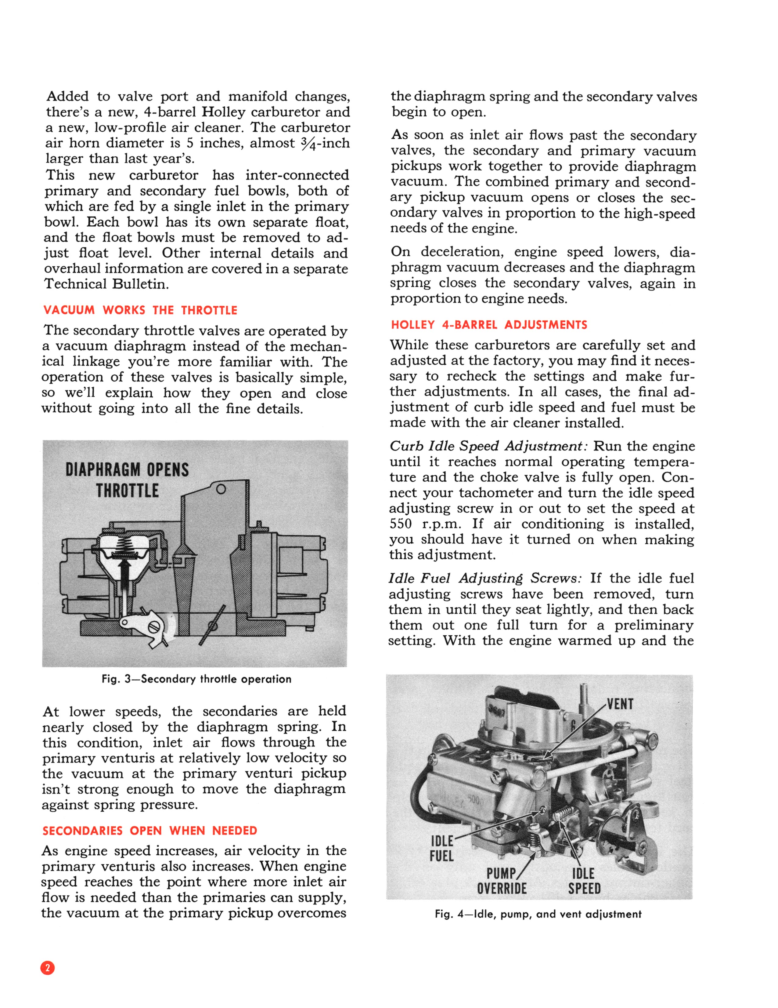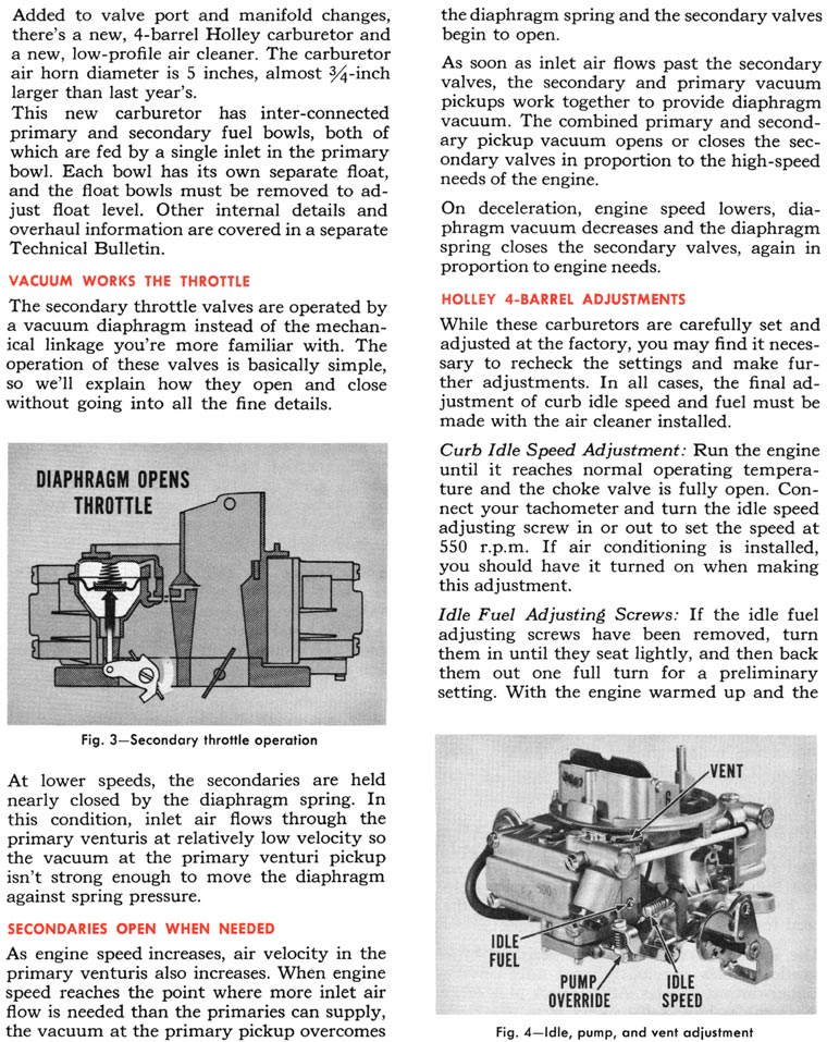 Front Cover Introduction Page & Table of Contents Page 1 - New 318 Engine, Hydraulic Valve Tappets & New Holley Carburetor Page 2 - Vacuum Works The Throttle & Holley 4-Barrel Adjustments Page 3 - More Holley 4-Barrel Adjustments Page 4 - The 400 Engine & General TorqueFlite Improvements Page 5 - A-904 Improvements & 727 Changes Page 6 - Hi-Po 440 Rear Axles & IMPERIAL Drive-Line Changes Page 7 - IMPERIAL Suspension Design Page 8 - New Brake System Improvements Page 9 - The Hydraulic Junction & The Warning Light Switch Page 10 - Dual Diaphragm Power Brake Units & Brake Shoe Improvements Page 11 - Steering System Changes Page 12 - More On Steering System Changes Page 13 - Silent Door Latches, Flow-Through Ventilation & Convertible Tops Back Cover