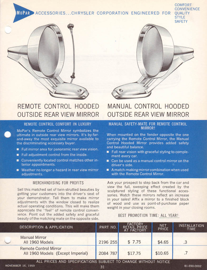 MoPar Accessories for 1960