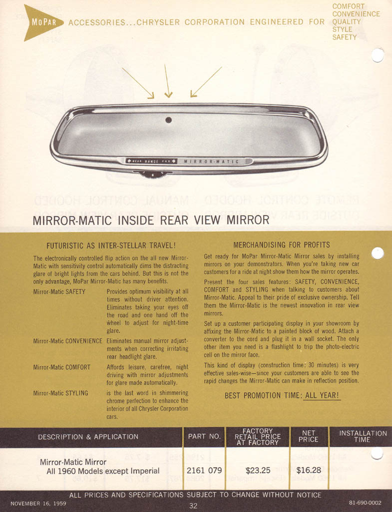Imperial Home Page -> Imperials by Year -> 1960 -> MoPar Accessories
