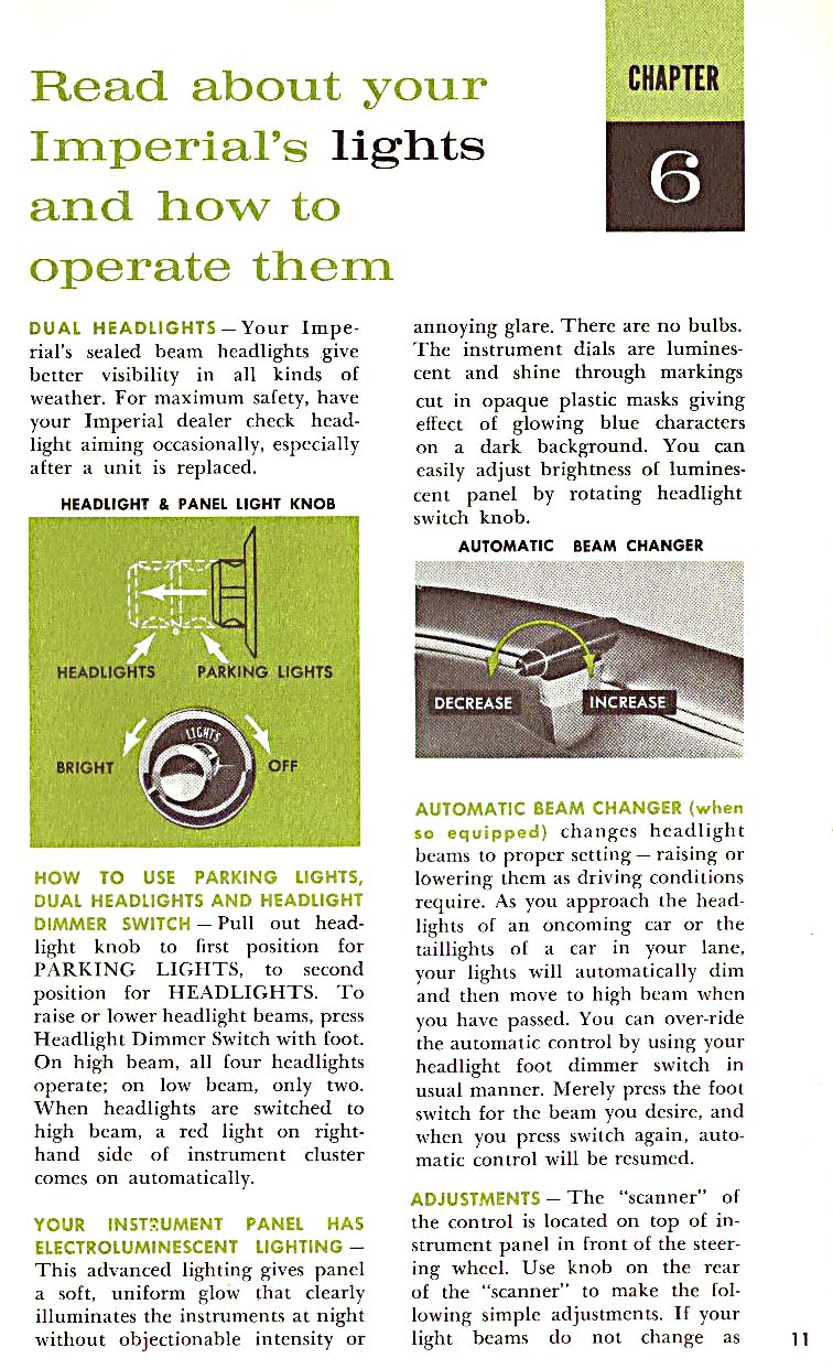 Imperial Home Page -> Imperials by Year -> 1961 -> Owner's Manual -> 6: Operation of Lights