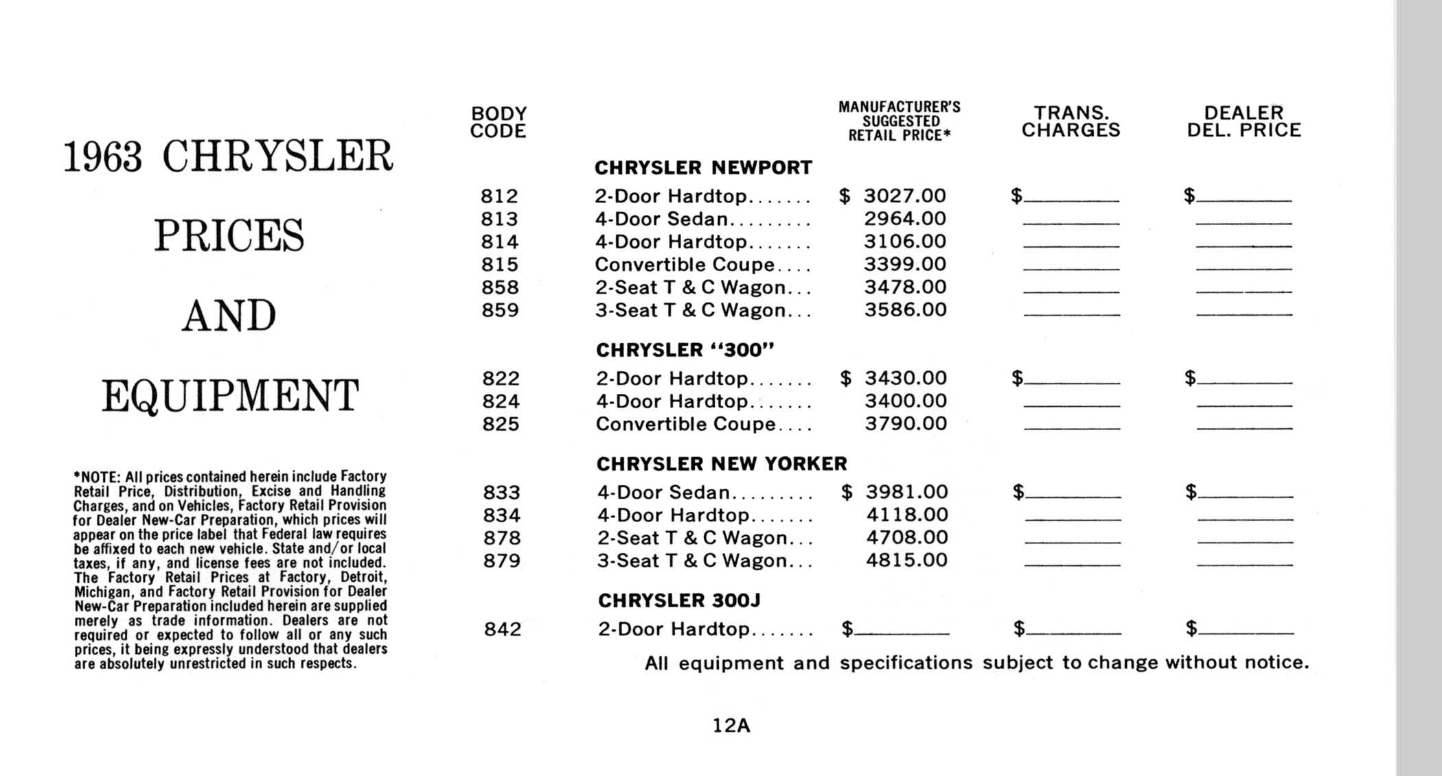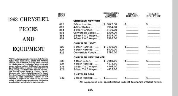 Imperial Home Page -> Imperials By Year-> 1963 -> Data Book