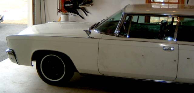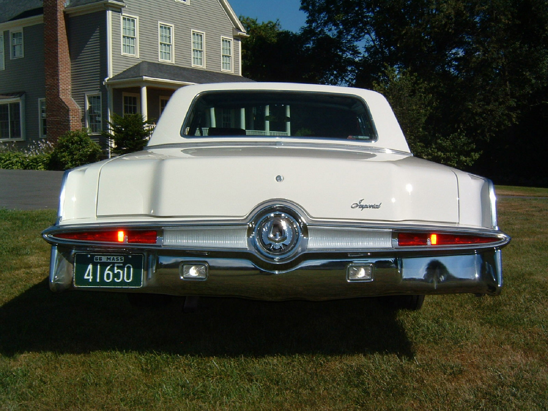I thought this exterior completion milestone was a good time to unveil our ’66 and share its beauty with the rest of the world. I’m not much of a writer and I don’t even talk a lot so I will keep the descriptions here brief. Someday, I may get inspired and write about all the crazy steps it has taken to get this far – like finding a new A/C Compressor and Clutch from someone in Texas, the select chrome and stainless pieces I needed and bought from Lowell Howe in California, the generous person on the Imperialclub mailing list who gave me a new front grill for FREE, many nice new hard-to-find pieces from Gary Goers, decals from Jim Osborn, carpet samples from ACC, headliner samples from SMS, misc. used parts from many members and referrals on Imperialclub, incredible advise and technical information from the Imperialclub, good finds on ebay, and an amazing paint job by Maaco in New Bedford, MA (yes, Maaco!!).