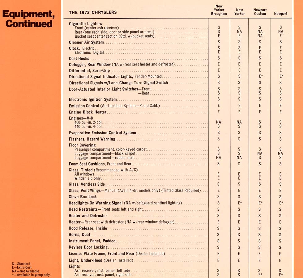 Click here to return to the 1973 Chrysler Table of Contents