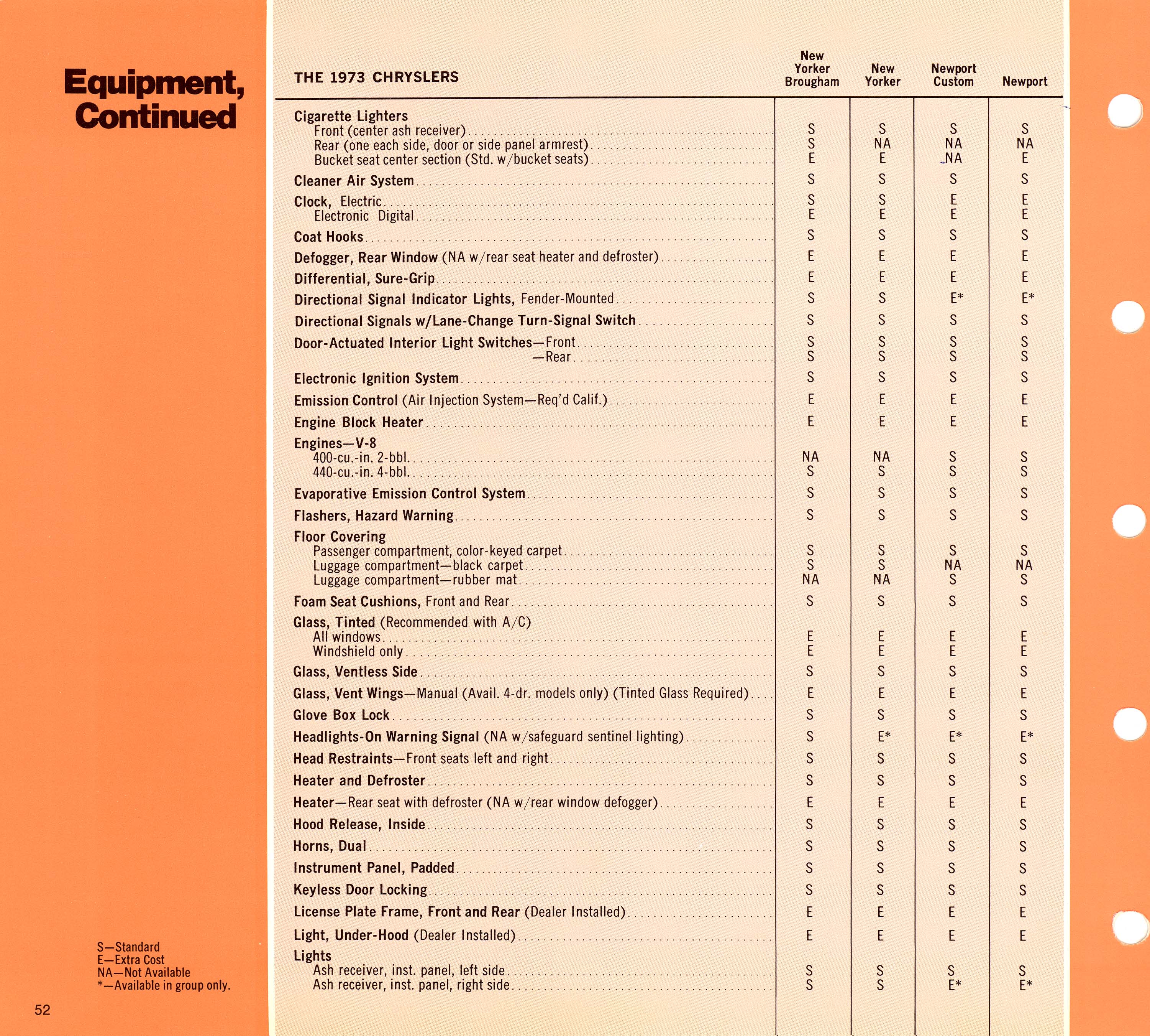 Page 52 - The 1973 Chrysler Model Dimensions and Equipment Continued